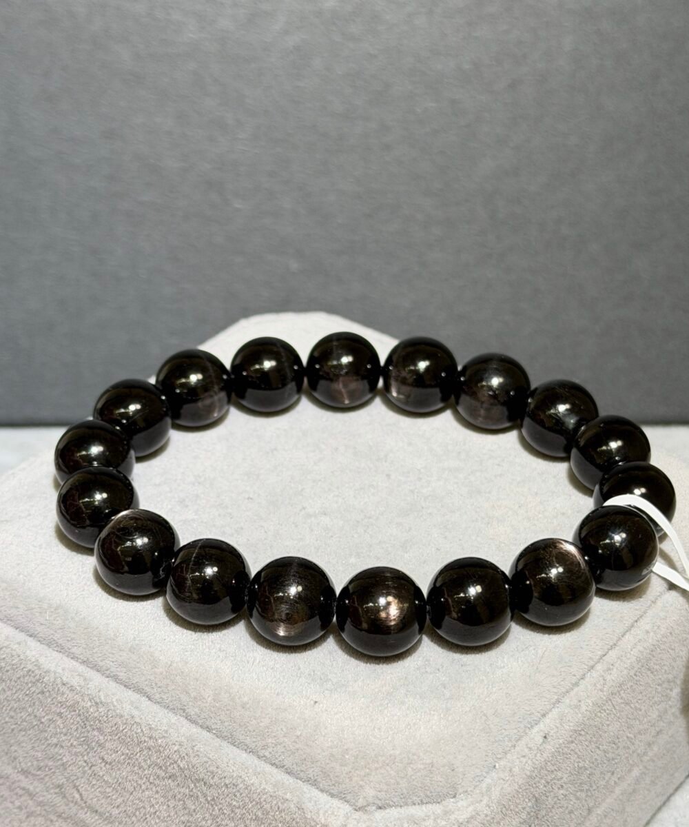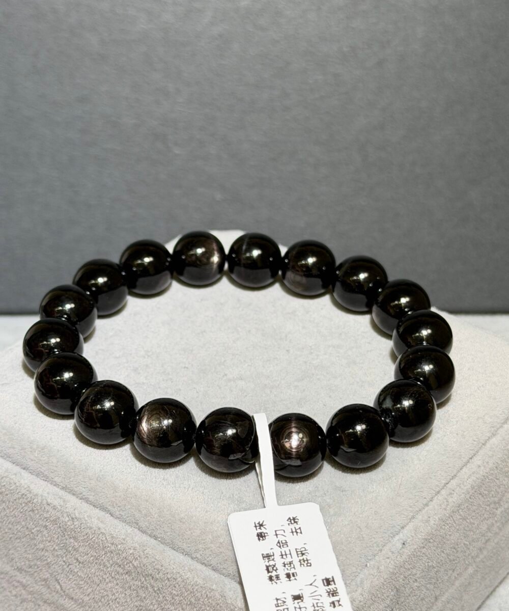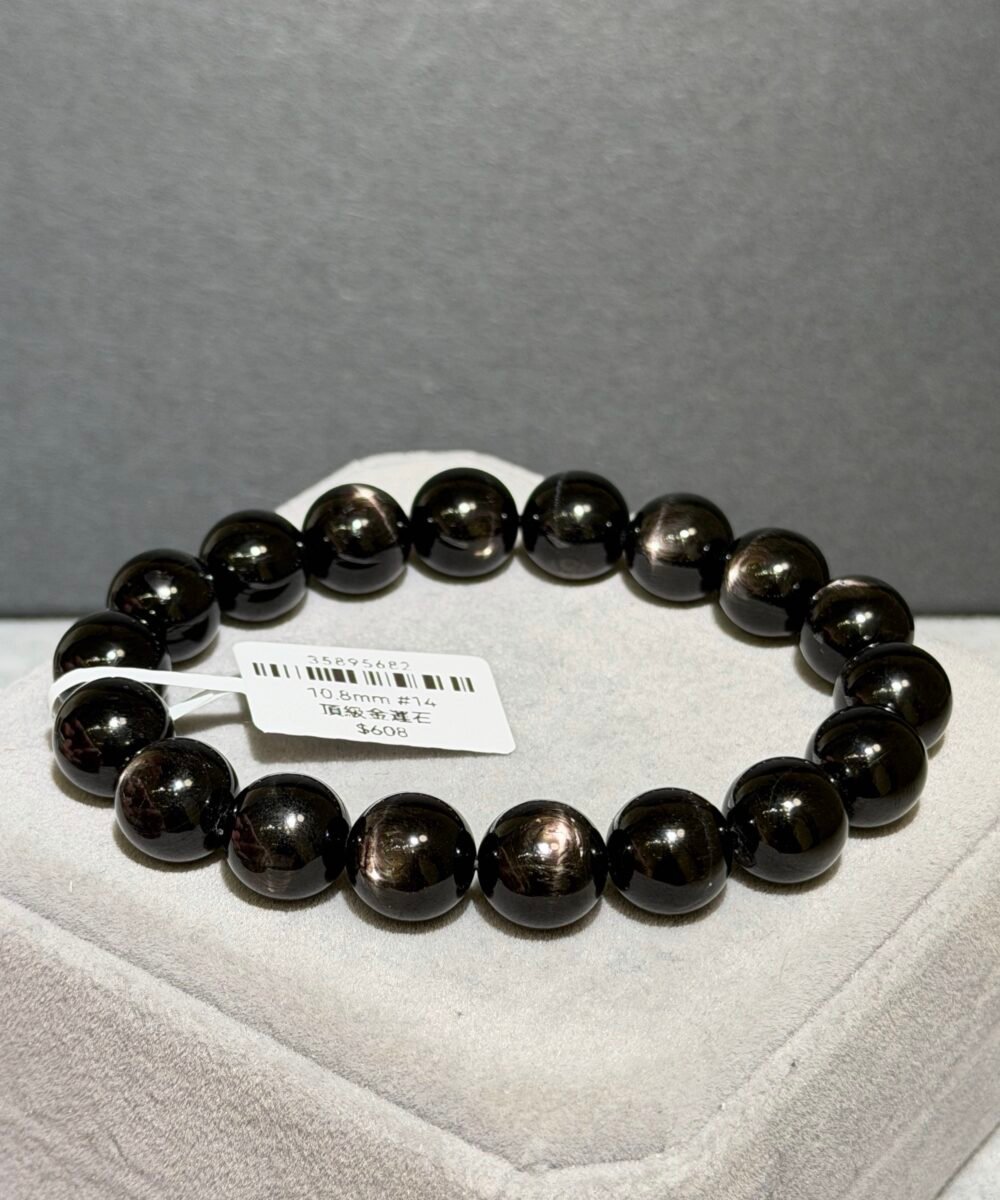 金運石又被稱為「紫蘇輝石」、「黑銀線」,濃黑色表面光滑帶點油潤感,光線照射下會帶有十字星光,象徵「幸運與財富」之石。