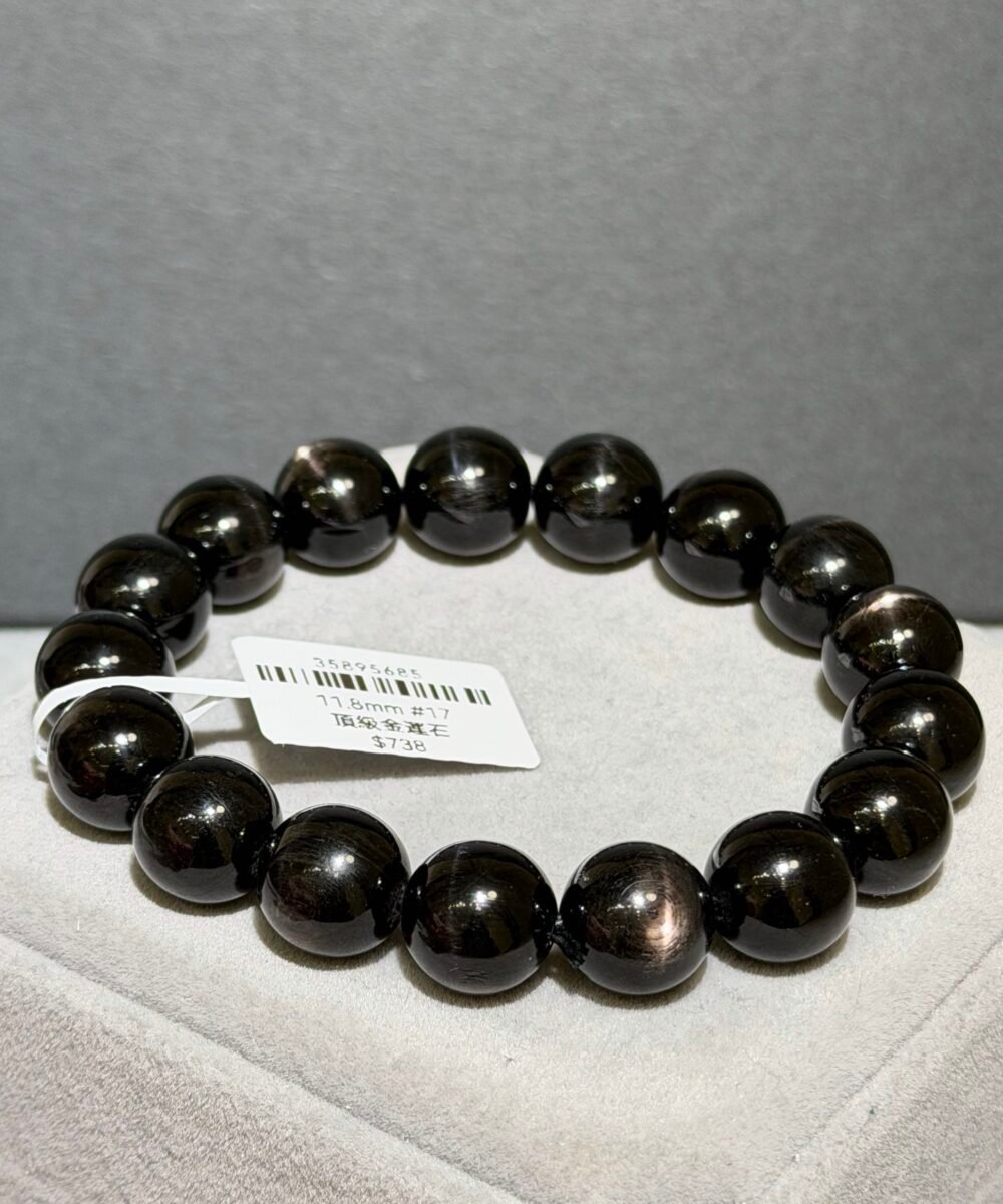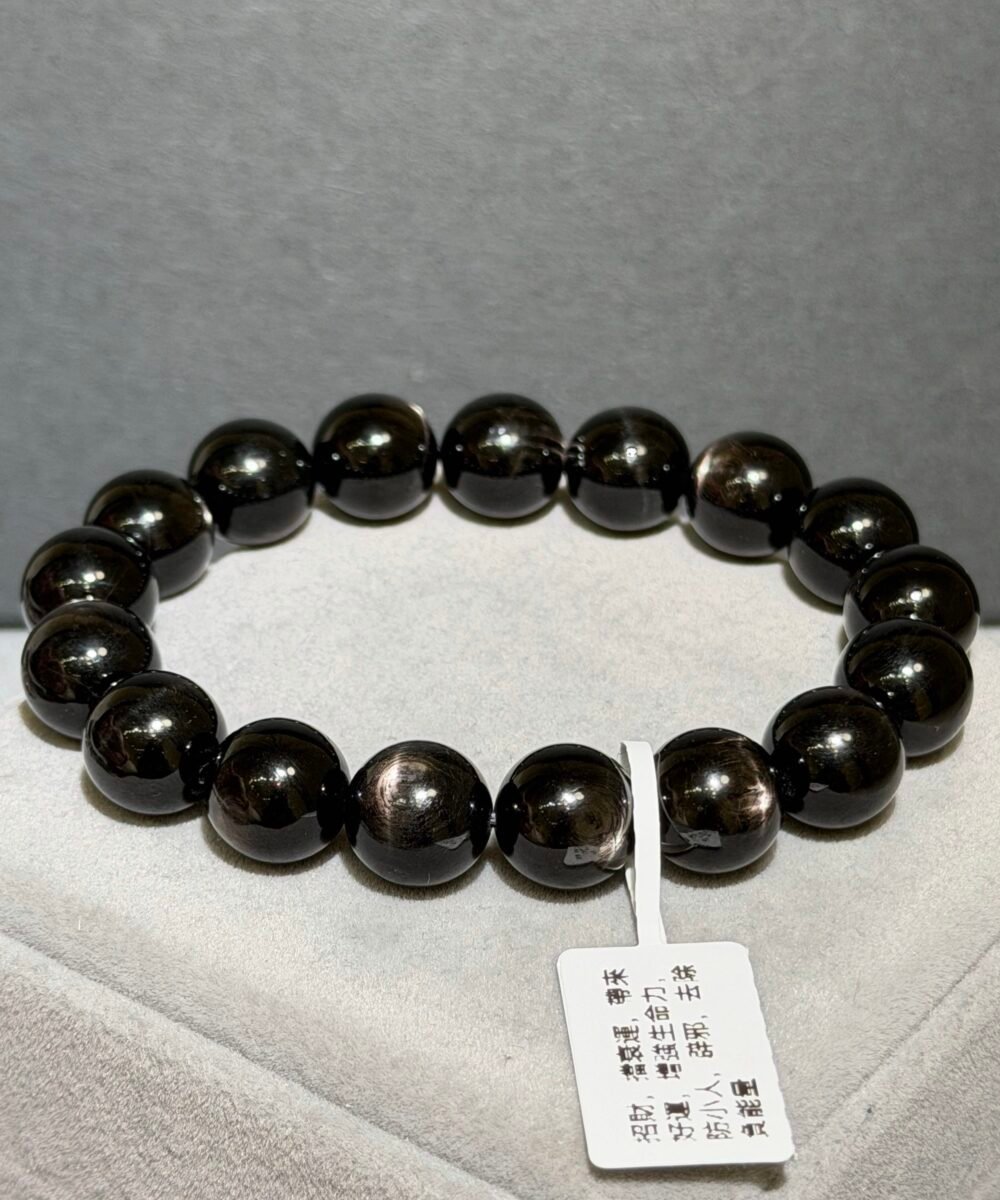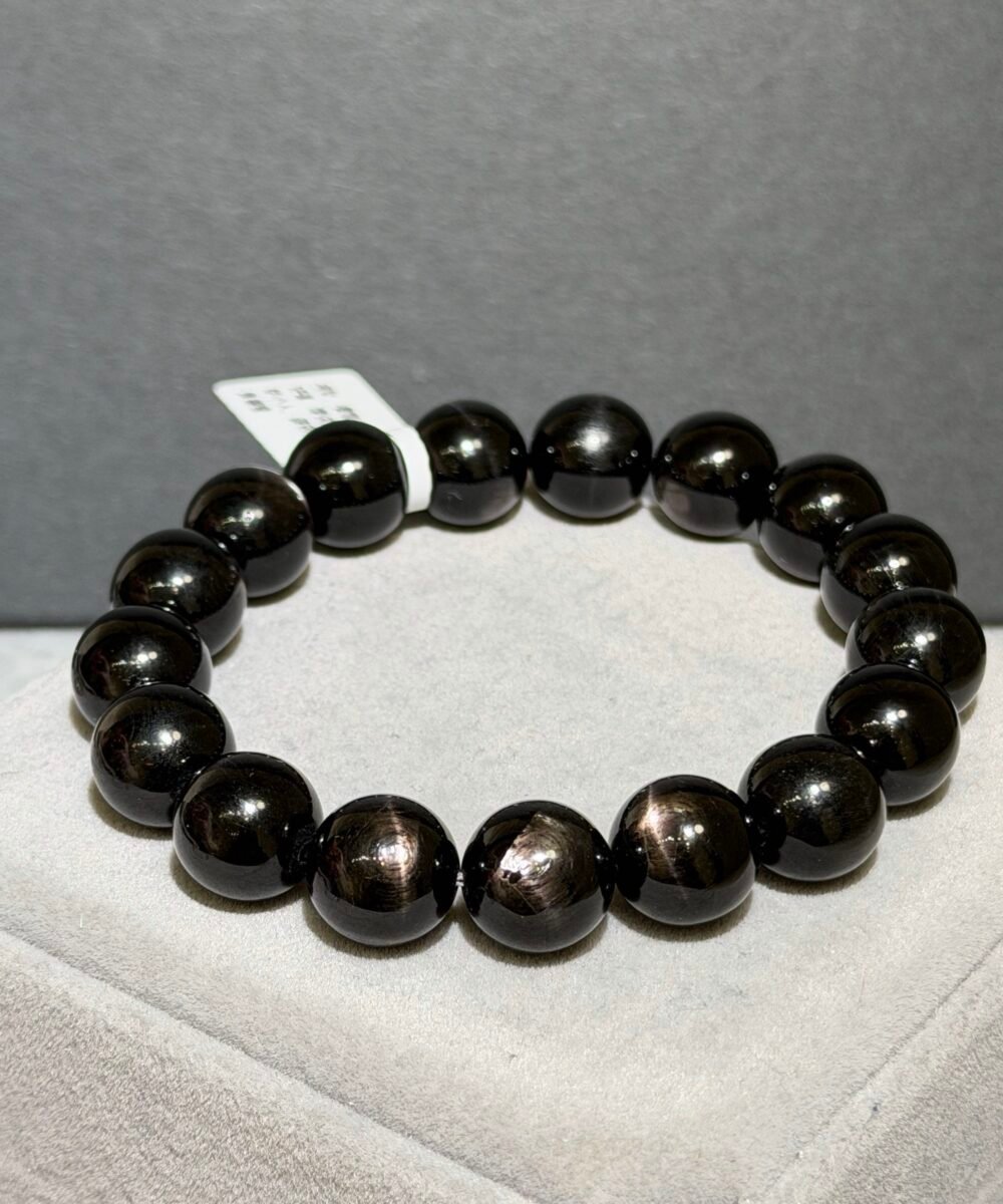 金運石又被稱為「紫蘇輝石」、「黑銀線」,濃黑色表面光滑帶點油潤感,光線照射下會帶有十字星光,象徵「幸運與財富」之石。