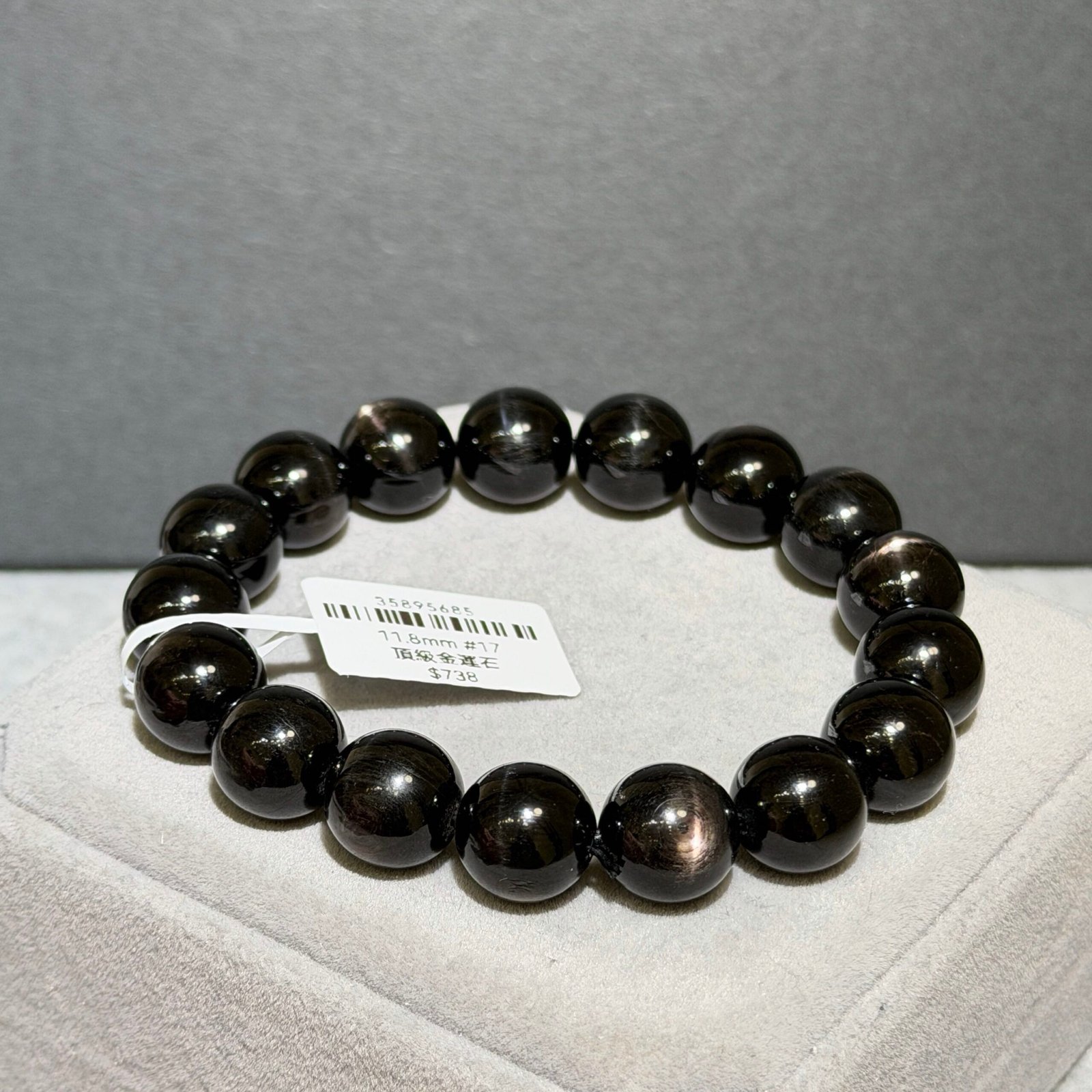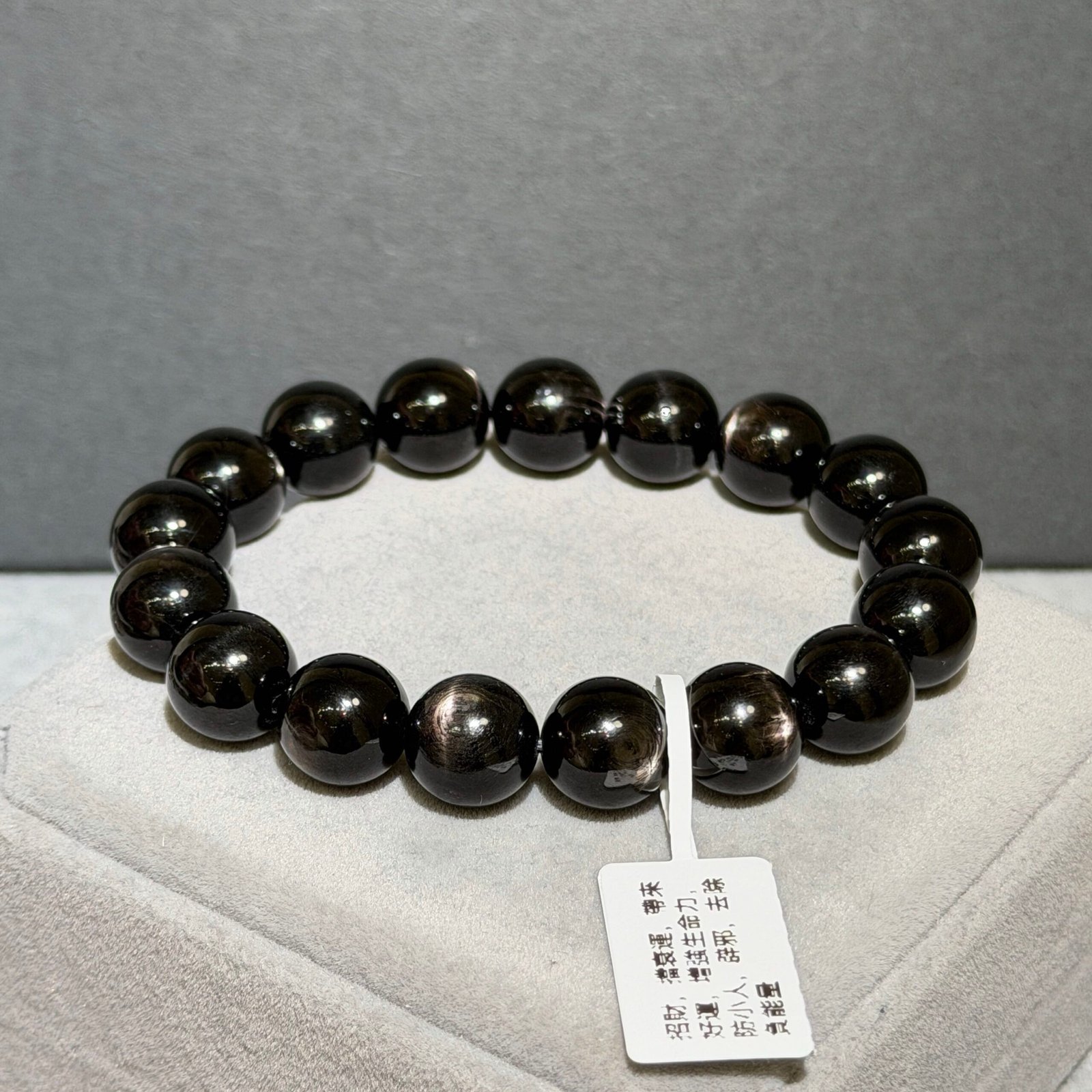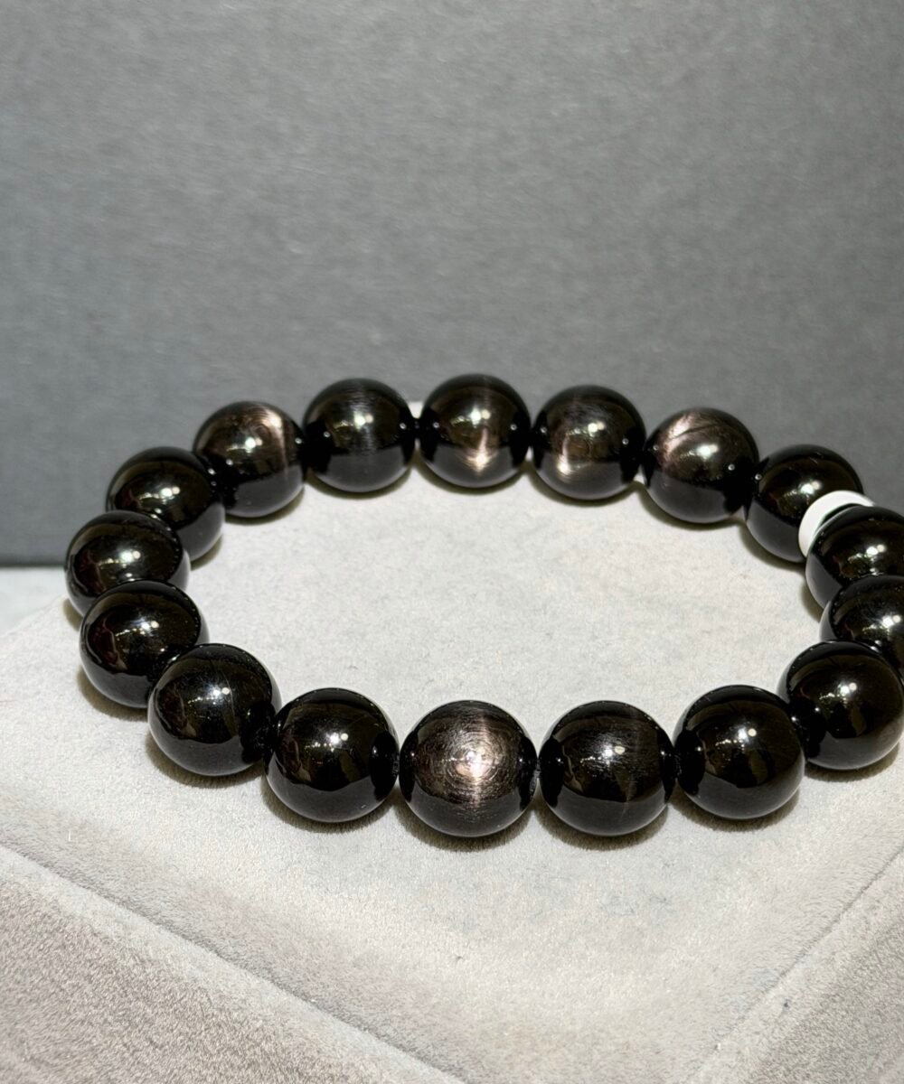 金運石又被稱為「紫蘇輝石」、「黑銀線」,濃黑色表面光滑帶點油潤感,光線照射下會帶有十字星光,象徵「幸運與財富」之石。