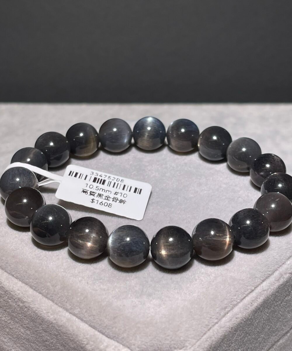 黑金骨幹(黑金太陽石)是太陽石/日長石家族的一種,對應人體的太陽輪和臍輪,晶石內含有纖鐵礦、赤鐵礦髮絲,反射出漂亮的金銀色的光面。 黑金骨幹作為太陽石的一員,是一種充滿正能量的晶石,可以幫助驅除病氣和身體內的負面能量,也可辟邪防小人,保佑平安,更能化太歲。